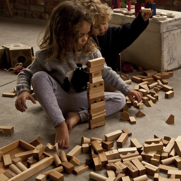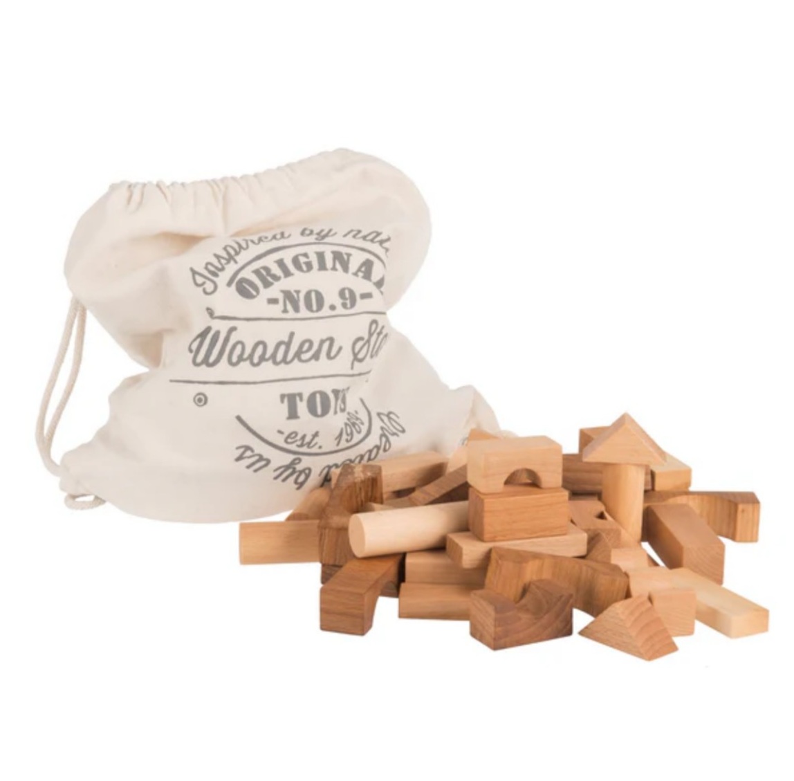 100 קוביות עץ טבעי ממוחזר, בשק מבד ממוחזר!