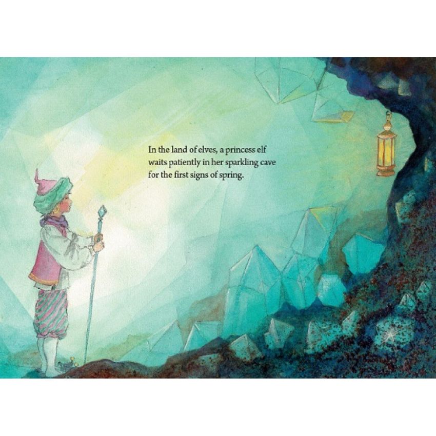Full-spread watercolor illustrations reveal the secret world of the elves and their animal companions. In amongst the tree roots and fields, we see them at work and play through the seasons.